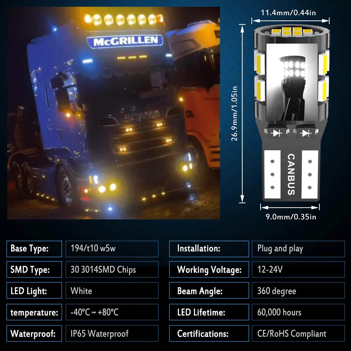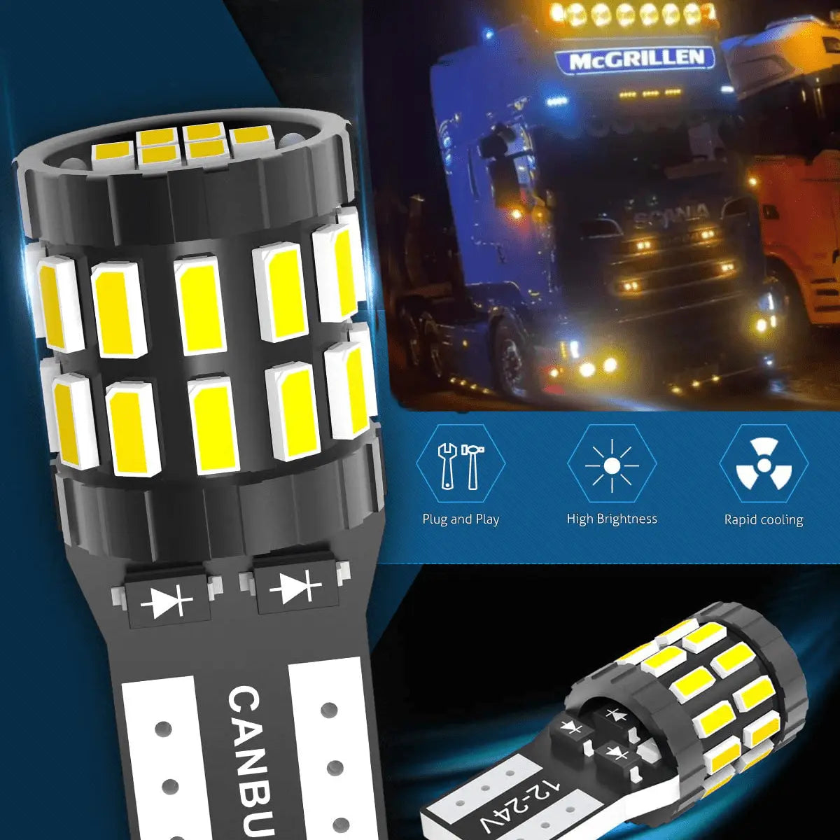 Part number: Kat501/7W 12/24v Capless LED Bulbs for Spot Lights, Side Lights, Interior Lights Canbus Free LED bulbs are a simple, quick and direct – In Your Truck Ltd